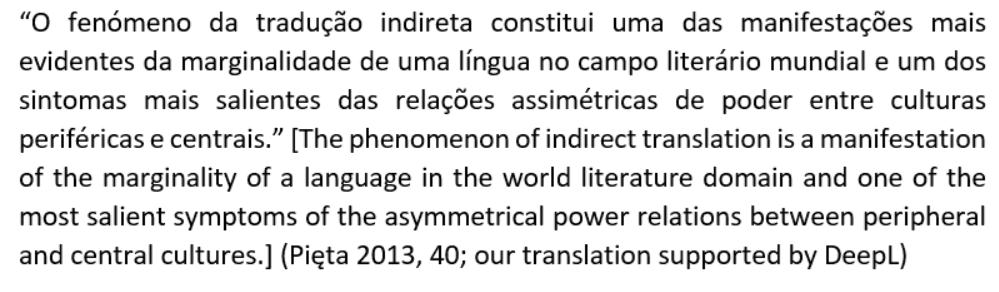 Se um humano tiver pós-editado o resultado de um motor de tradução automática, significa que a tradução teve o apoio da tradução automática e tal deve ser indicado entre parênteses após a tradução. Por exemplo, pode escrever “tradução nossa com o apoio do Google Tradutor”. No caso de não ter sido feita qualquer pós-edição, indique que a tradução é uma “tradução automática do DeepL”. Inclua o autor, o ano e o número da página do excerto que está a citar diretamente no texto e indique a referência completa na secção da bibliografia. Para além disto, mencione na secção da metodologia que foram utilizados motores de tradução automática para entender o significado geral de um texto e para auxiliar o seu processo de tradução.